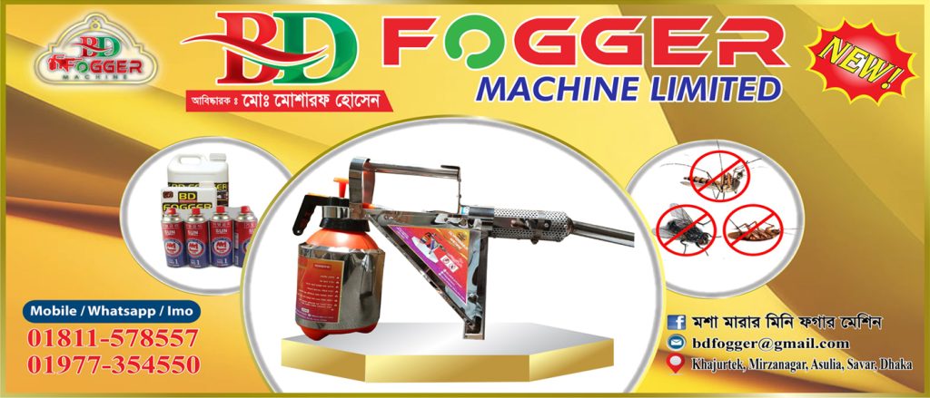 বিঃ দ্রঃ ফগার মেশিনে ব্যবহারের জন্য মশা মারার কেমিক্যাল, মেডিসিন ও গ্যাস এস, এ পরিবহনের মাধ্যমে কন্ডিশনে ঢাকা ও ঢাকার বাহিরে ডেলিভারি দেওয়া হয়।